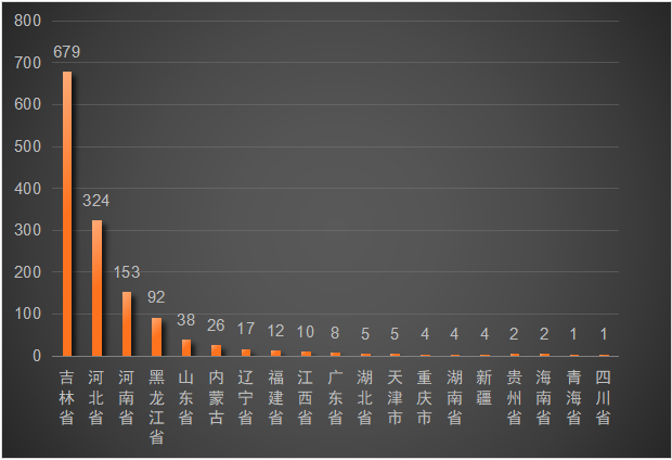 2025年我校共有毕业生1387人,吉林省679人,占总人数的48.95%;河北省324人,占总人数的23.35%;河南省153人,占总人数的11.03%,黑龙江省92人,占总人数的6.63%;山东省38人,占总人数的2.73%;内蒙古26人,占总人数的1.87%;辽宁省17人,占总人数的1.22%;福建省12人,占总人数的0.86%;江西省10人,占总人数的0.72%;广东省8人,占总人数的0.57%;湖北省5人,占总人数的0.36%;天津市5人,占总人数的0.36%;重庆市4人,占总人数的0.28%;湖南省4人,占总人数的0.28%;新疆4人,占总人数的0.28%;贵州省2人,占总人数的0.14%;海南省2人,占总人数的0.14%;青海省1人,占总人数的0.07%;四川省1人,占总人数的0.07%。