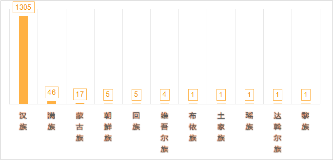 2025年我校共有毕业生1387人,汉族1305人,满族46人,蒙古族17人,朝鲜族5人,回族5人,维吾尔族4人,布依族1人,土家族1人,瑶族1人,达斡尔族1人,黎族1人。
